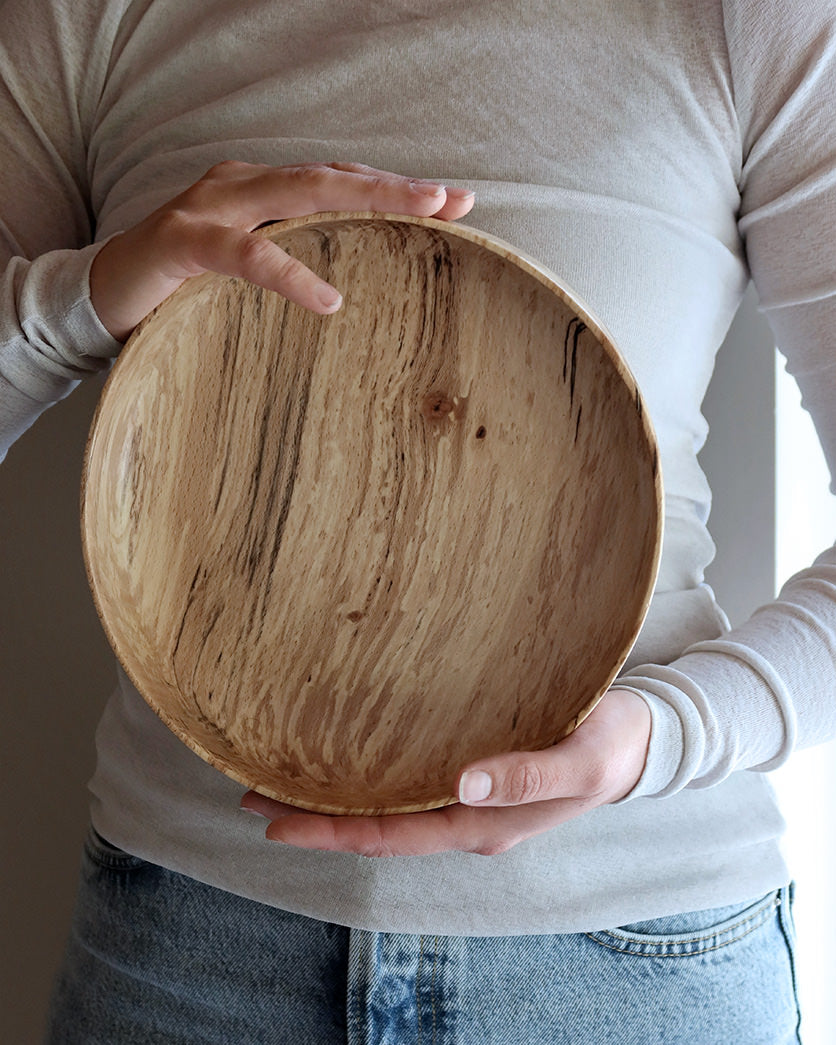 Fadet er drejet i bøg. Det er drejet med en høj kant og en flad bund, perfekt til at arrangere fødevarer til servering. Bunden har en runding, så det skaber en svævende effekt og gør fadet let at gribe fat i. Velegnet til både hverdagsbrug og særlige anledninger.