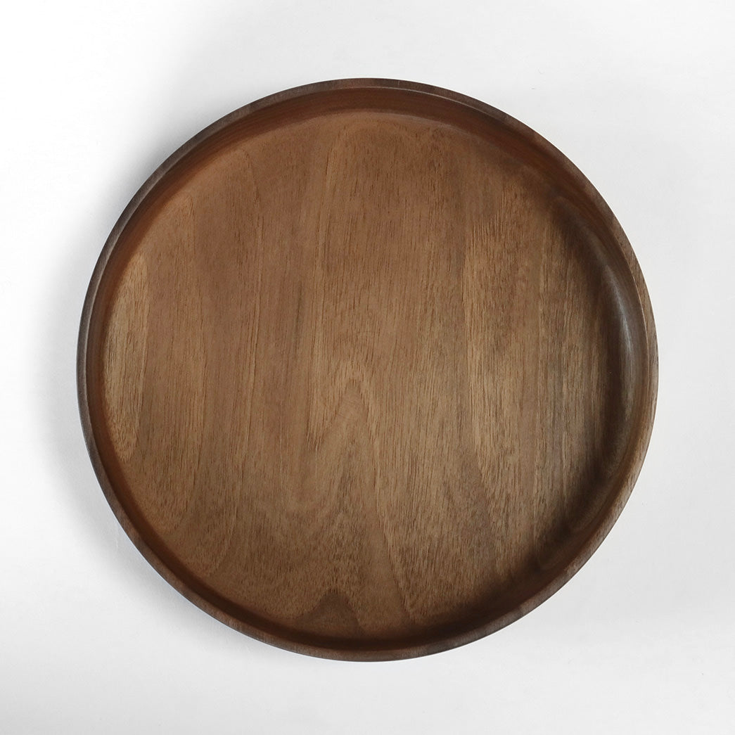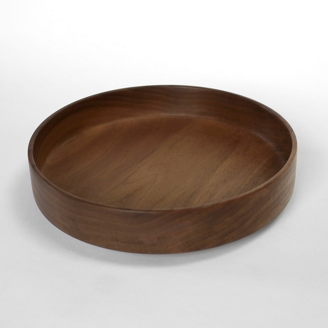 Fadet er drejet i sort valnød med en høj kant og en flad bund. Udvendig har bunden en runding, der giver en svævende fornemmelse og gør fadet let at gribe fat i. Den er velegnet til servering af mad eller som underlag for pynt og opstillinger.